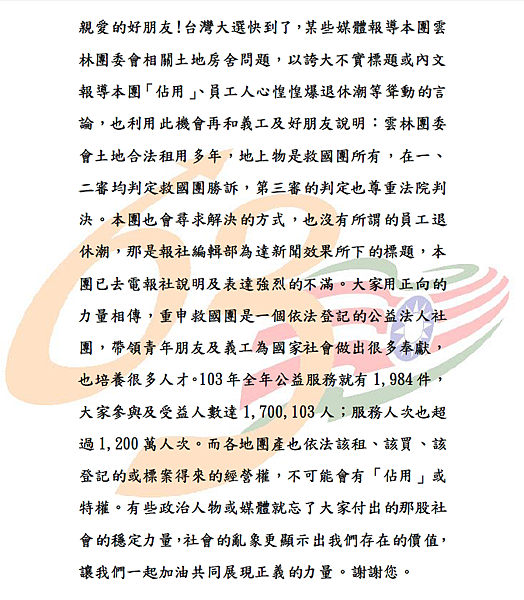 本團針對1040910媒體不實報導之說明
